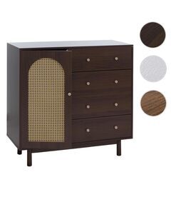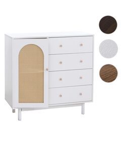- Anbieter TᅵV-Sᅵd QM ISO9001 zertifiziert mit Nr. 12 100 59626 TMS - Oberfläche mit Melamin-Beschichtung besonders kratzfest, wasserfest - Stilvolle Türfront mit dekorativem Poly-Rattan-Einsatz - Viel Stauraum durch vier großzügige Schubladen - Zwei Ablagefächer mit Tür - Tür mit...