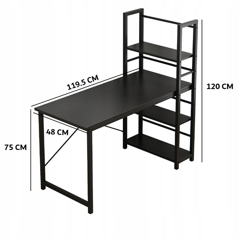 Schwarzer Computer-Loft-Schreibtisch im Industrial-Stil mit Regal, 120 cm