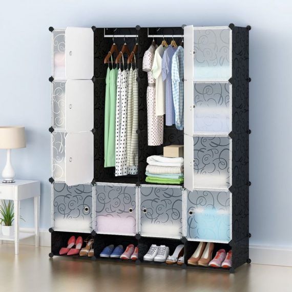 Modularer Schrank, einfach zu montieren und praktischDer leichte, klappbare Kleiderschrank ist ein häufig verwendeter Ersatz für traditionelle MöbelIm Schlafzimmer dient er als Kleiderschrank. In kleinen Räumen ist es eine einfache Lösung für das Problem der Aufbewahrung von KleidungPasst auch in kleine, beengte InneneckenDer Kleiderschrank hat einen Metallrahmen mit KunststoffverschlüssenEs ist sehr einfach und schnell zu montieren und dauert nur wenige Minuten. Es funktioniert auch gut, wenn Sie reisen oder Ihren Wohnsitz häufig wechseln Die Regale haben Magnete in den Schlössern, so dass sich die Regale nicht von selbst öffnenDie Regale sind aus wasserfestem Material und leicht zu reinigenGleichzeitig sind sie sehr robust und widerstandsfähig gegen mechanische Beschädigungen. Montiert im PLUG-IN-System
