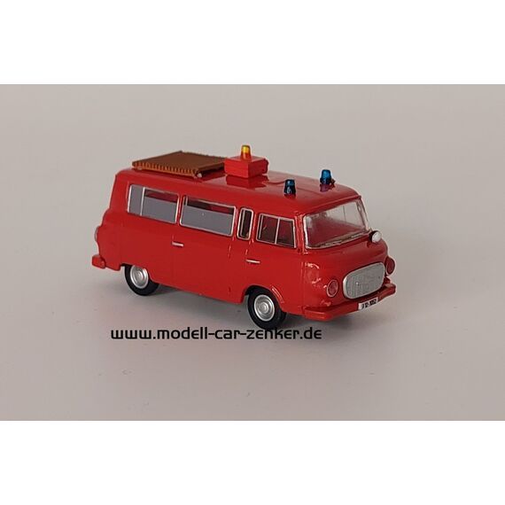 Modell Car Zenker 03-426 IFA Barkas B1000 ADW. Ausrückedienstwagen der Feuerwehr Dresden. Eingefahrener Kurbelmast mit gelber Rundumleuchte. Sondermodell