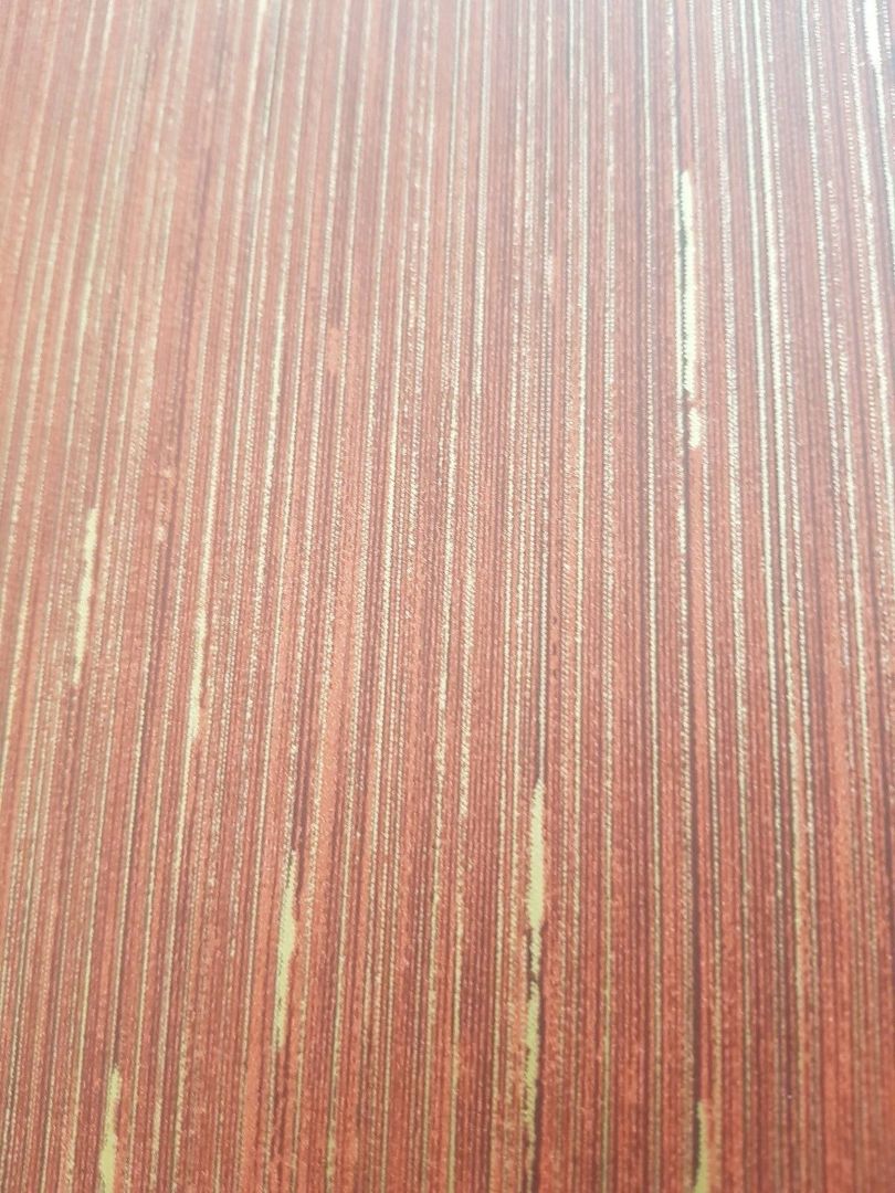 Dies ist eine edle Luxusdesigntapete auf einem glatten, in sich ziselierten Grund. Das Design lässt den Eindruck von gemasertem Holz entstehen. Man wählte hier eine schöne Liaison von u. a. verschiedenen, warmen Kaminrot- und Gold-Abstufungen. Hinzu kommt ein Hauch von Schimmer, der aber nur ganz leicht und bei bestimmtem Lichteinfall zu sehen ist. Einfach wunderschön und zeitlos! Absolut stimmig und harmonisch im Gesamtbild! Sie ist eine perfekte Alternative zur normalen, üblichen Alltags-Rauhfaser oder schlicht getünchten Wand. Ob eine Bahn, eine Wand oder der ganze Raum, sie macht alles einen Hauch eleganter, extravaganter und einzigartiger. Setzen Sie Akzente! (Bitte bei den Detailbildern beachten, dass es hier zu farblichen Abweichungen kommen kann und sie nur dem besseren Erkennen des Trägers, der "Maserung" und des Schimmers dienen.)