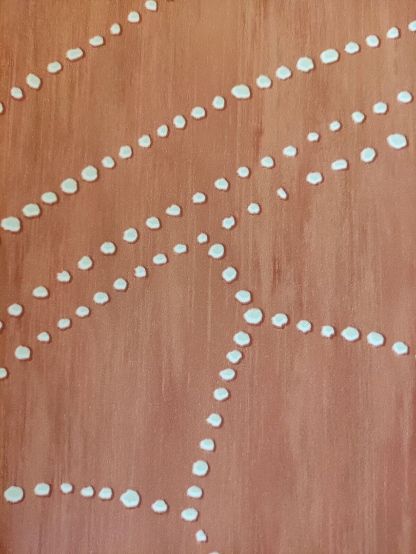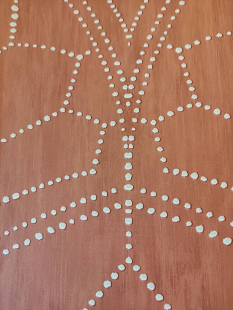 Dies ist eine wunderschöne, sehr luxuriöse Designtapete. Diese Tapete bringt Eleganz und Extravaganz pur in jedes Eigenheim. Der Träger ist einer Mischung aus rauchigem Rost- bis Ziegelrot gehalten, darauf hat man die Ornamente mit Pünktchen in warmem Eierschale aufgebracht. Einfach stimmig und harmonisch im Gesamtbild. Ob alle 4 Wände oder nur als Eyecatcher an einer Wand, mit diesem Design und dieser Farbkombination kann man nichts falsch machen. (Bitte bei Bild 2 beachten, dass es hier zu farblichen Abweichungen kommen kann und nur für den Gesamteindruck steht/Die Bilder 1 und 3 bis 5 dienen dem besseren Erkennen des Trägers und der Pünktchen bzw. Übergänge; es kann hier auch zu Farbabweichungen kommen.)