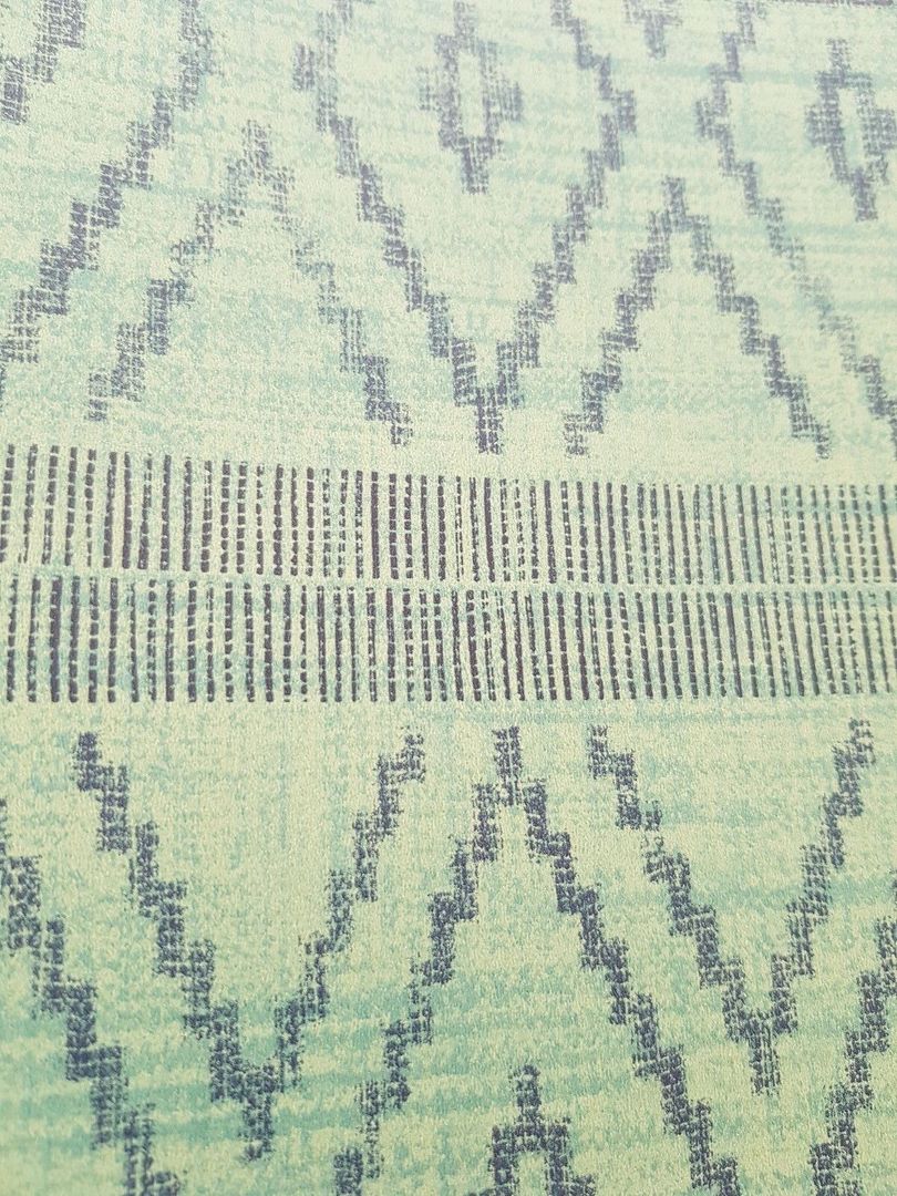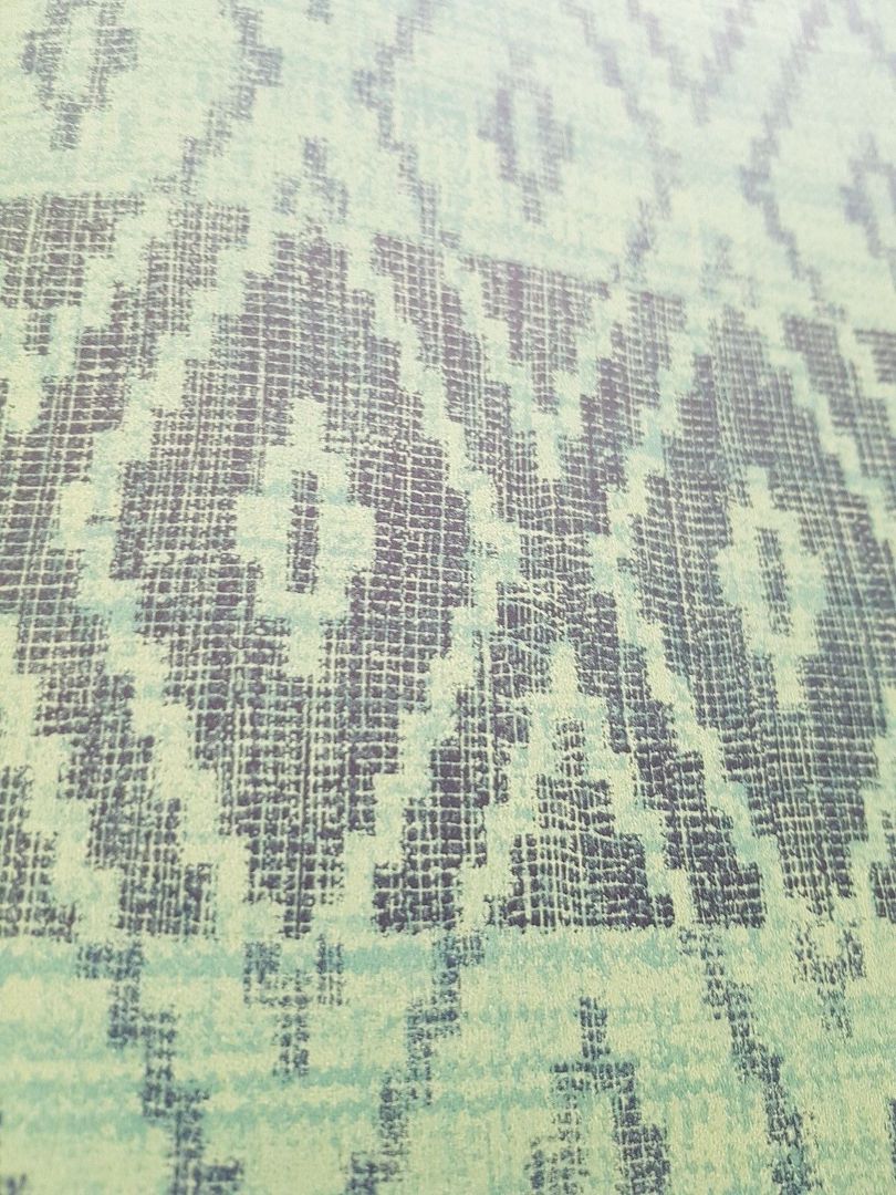 Dies ist eine edle Luxusdesigntapete auf einem glatten, aber in sich ziselierten Träger. Das Motiv - hier: Maya-ähnliche Rauten und Streifen, die manch einen an einen Poncho denken lässt. Man wählte hier eine schöne Liaison von u. a. verschiedenen, frischen Grün- und Jeansblau-Abstufungen. Dazu kommt ein Hauch von Schimmer, der allerdings nur bei bestimmtem Lichteinfall zum Tragen kommt. Einfach zeitlos und wunderschön! Absolut stimmig und harmonisch im Gesamtbild! Sie ist eine perfekte Alternative zur normalen, üblichen Alltags-Raufaser oder schlicht getünchten Wand. Ob eine Bahn, eine Wand oder der ganze Raum, sie macht alles einen Hauch eleganter, extravaganter und luxuriöser. Setzen Sie Akzente! (Bei Bild 2 bitte beachten, dass es lediglich dem Gesamteindruck dient und es zu farblichen Abweichungen kommen kann/Die Detailbilder dienen dem besseren Erkennen des leichten Schimmers, des Trägers und des Designs an sich/es kann auch hier zu farblichen Abweichungen kommen.)