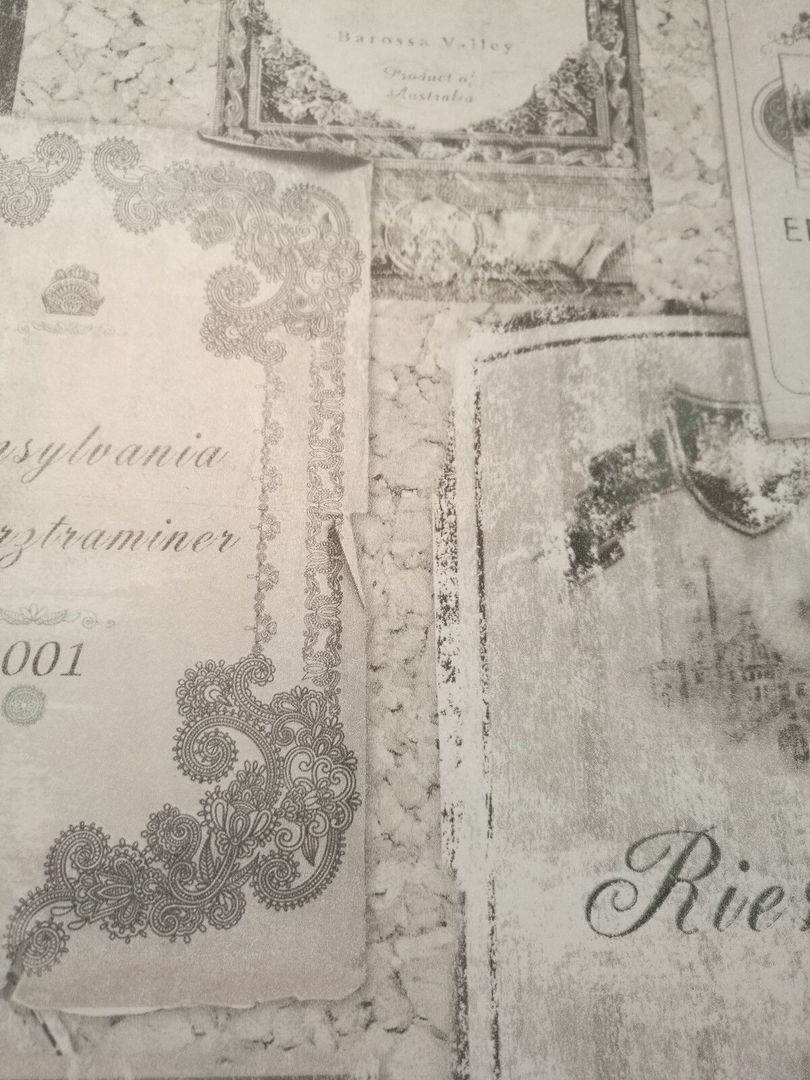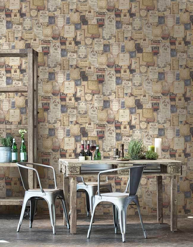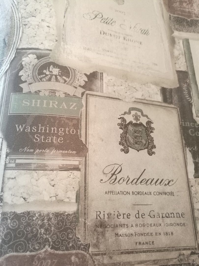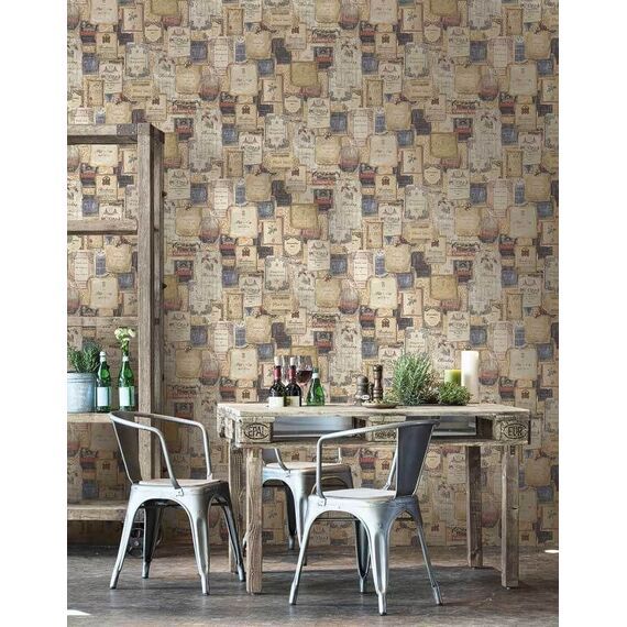 Dies ist eine sehr edle Luxustapete mit einer liebevollen Kollektion von diversen Weinetiketten, quasi eine Hommage an Wein! Man entschied sich u. a. für sanfte Braun-, Stein- und Petrol-Abstufungen. Hinzu kommt, dass ein leichter Schimmer eingearbeitet wurde. Absolut stimmig und harmonisch im Gesamtbild! Sie ist eine perfekte Alternative zur normalen, üblichen Alltags-Raufaser oder schlicht getünchten Wand. Ob eine Bahn, eine Wand oder der ganze Raum, sie macht alles einen Touch eleganter und luxuriöser. Setzen Sie Akzente! Schaffen Sie sich Ihr eigenes Bistro...(Bitte bei Bild 2 beachten, dass es lediglich für den Gesamteindruck steht und es zu farblichen Abweichungen kommen kann/Die Detailbilder dienen dem besseren Erkennen der Etiketten und des Schimmers.)