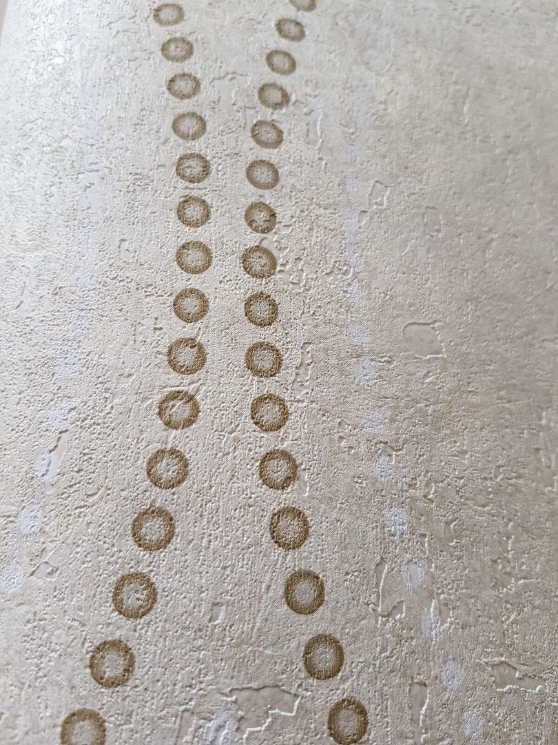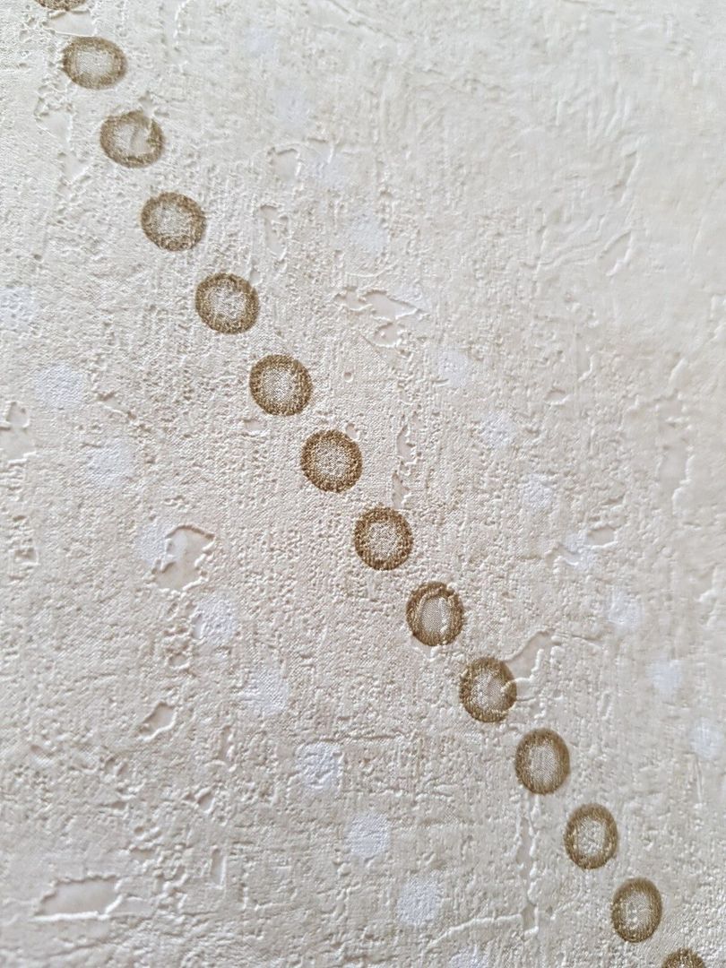 Unsere Tapeten werden sonst nur im Fachhandel oder bei Raumausstattern verkauft, da es sich hier um hochwertige Design-Tapeten handelt, ohne künstliche Zusätze. Alle unsere Tapeten haben das zertifizierte "ECO CHIC" Logo, dass die völlig umweltfreundliche Produktion, wie auch unschädlichen Komponenten zeigt. Die Tapeten haben eine hauchdünne Acrylbeschichtung, die den Tapeten Eigenschaften verleiht, wie Lichtechtheit, sodass die Farben nicht verblassen oder die Möglichkeit die Tapeten mit einem feuchten Schwamm abzuwischen. Dies ist eine sehr edle, melierte und "griffige" Luxustapete auf einem hochwertigem VINYL-Träger; dieser wirkt, als wäre er gekrinkelt und erinnert an Seide. Das Motiv - hier: Oval angeordnete Pünktchen - wurde auf den Träger gelegt. Man entschied sich für eine farbliche Komposition von u. a. verschiedenen, sehr hellen Taupe-, Weiß- und Rehbraun-Nuancen. Hinzu kommt ein Hauch von metallischem Schimmer, der aber nur bei bestimmtem Lichteinfall zum Tragen kommt. Absolut stimmig und harmonisch im Gesamtbild! Sie ist eine perfekte Alternative zur normalen, üblichen Alltags-Raufaser, einem Bild an der Wand oder schlicht getünchten Wand. Ob eine Bahn, eine Wand oder der ganze Raum, sie macht alles einen Touch eleganter und luxuriöser. Setzen Sie Akzente! (Bitte bei Bild 2 beachten, dass es lediglich dem Gesamteindruck dient und es hier zu farblichen Abweichungen kommen kann/Die Detailbilder dienen dem besseren Erkennen der Struktur, des Schimmers und des Motivs an sich; es kann auch hier zu farblichen Abweichungen kommen).