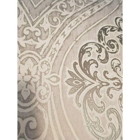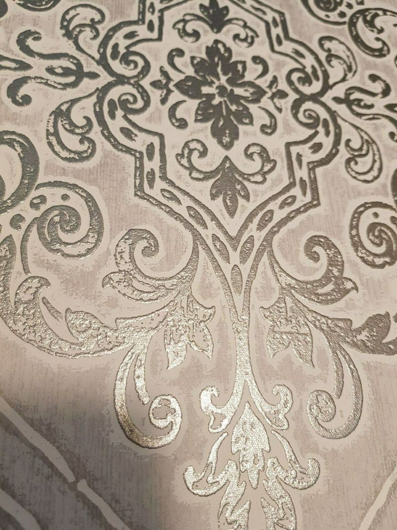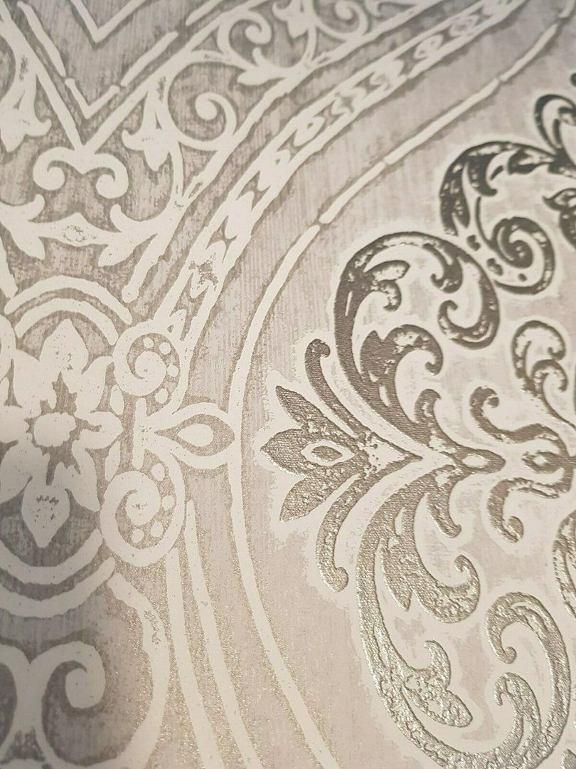 Dies ist eine edle Luxusdesigntapete auf einem in sich zart gemaserten, auf antik gemachten VLIESträger. Das Motiv hier: Opulente, florale Ornamente, die von Weitem betrachtet, eine Art Medaillonmuster ergeben. Teilweise sind die Ornamtente mit einer fühlbaren Struktur auf den Träger gelegt. Man wählte hier eine schöne Kombination von u. a. verschiedenen, weichen Stein-, dunklen Silber- und cremigen Kiesel-Nuancierungen. Hinzu kommt ein Hauch von Glanz, der nur bei bestimmten Lichtverhältnissen zu sehen ist. Einfach wunderschön! Absolut stimmig und harmonisch im Gesamtbild! Sie ist eine perfekte Alternative zur normalen, üblichen Alltags-Raufaser oder schlicht getünchten Wand. Ob eine Bahn, eine Wand oder der ganze Raum, sie macht alles einen Hauch eleganter, extravaganter und einzigartiger. Setzen Sie Akzente! (Bitte Bei Bild 2 beachten, dass es lediglich dem Gesamteindruck dient und es zu farblichen Abweichungen kommen kann/Die Detailbilder dienen dem besseren Erkennen des Designs an sich; es kann auch hier zu farblichen Abweichungen kommen.)