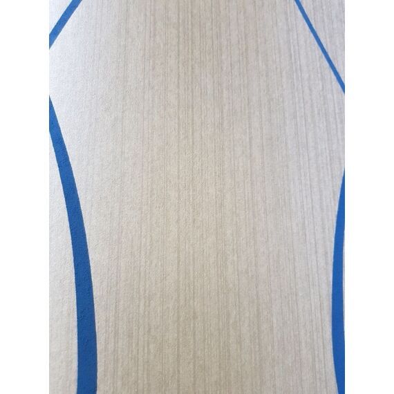 Dies ist eine edle Luxusdesigntapete auf einem festen, schimmernden Papierträger, welcher durch die retro-symmetrisch angeordneten Linien, die an verschlungene Bänder erinnern - und der Wildseiden-Optik noch zusätzlich veredelt wurde. Man entschied sich hier für ein gekonntes Zusammenspiel von Silber- und weichen Royalblau-Nuancen. Hinzu kommt eben dieser Hauch von Schimmer im Träger (die Linien sind gummiert-matt), der aber nur bei bestimmtem Licht-/Sonneneinfall zum Tragen kommt. Einfach wunderschön! Absolut stimmig und harmonisch im Gesamtbild! Sie ist eine perfekte Alternative zur normalen, üblichen Alltags-Rauhfaser oder schlicht getünchten Wand. Ob eine Bahn, eine Wand oder der ganze Raum, sie macht alles einen Hauch eleganter, einzigartiger und luxuriöser. Setzen Sie Akzente! (Die Detailbilder dienen dem besseren Erkennen des Schimmers, der Linien und der Wildseiden-Optik.)
