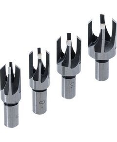 zum Anfertigen von Holz-Zapfen / -Pfropfen Beinhaltet vier Zapfenbohrer mit folgenden Maßen: Aussendurchmesser x Innendurchmesser x Innentiefe 13 x 6 x 20 mm 13 x 8 x 20 mm 16 x 10 x 20 mm 19 x 13 x 20 mm Aus unserer Kategorie: BGS